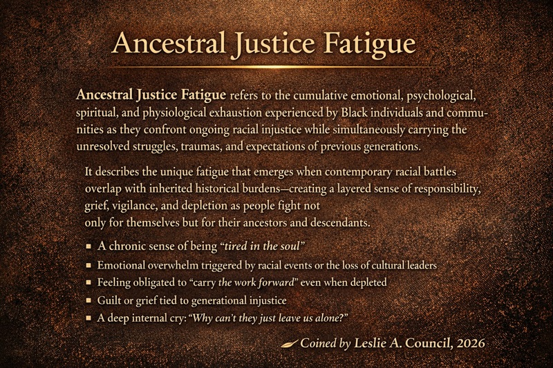 There is a term in academia - racial battle fatigue - coined by Dr. William A. Smith. It describes the emotional, psychological, and physical exhaustion that Black people experience from continual exposure to systemic racism. But what’s often unspoken is how this fatigue intensifies when cultural elders die.